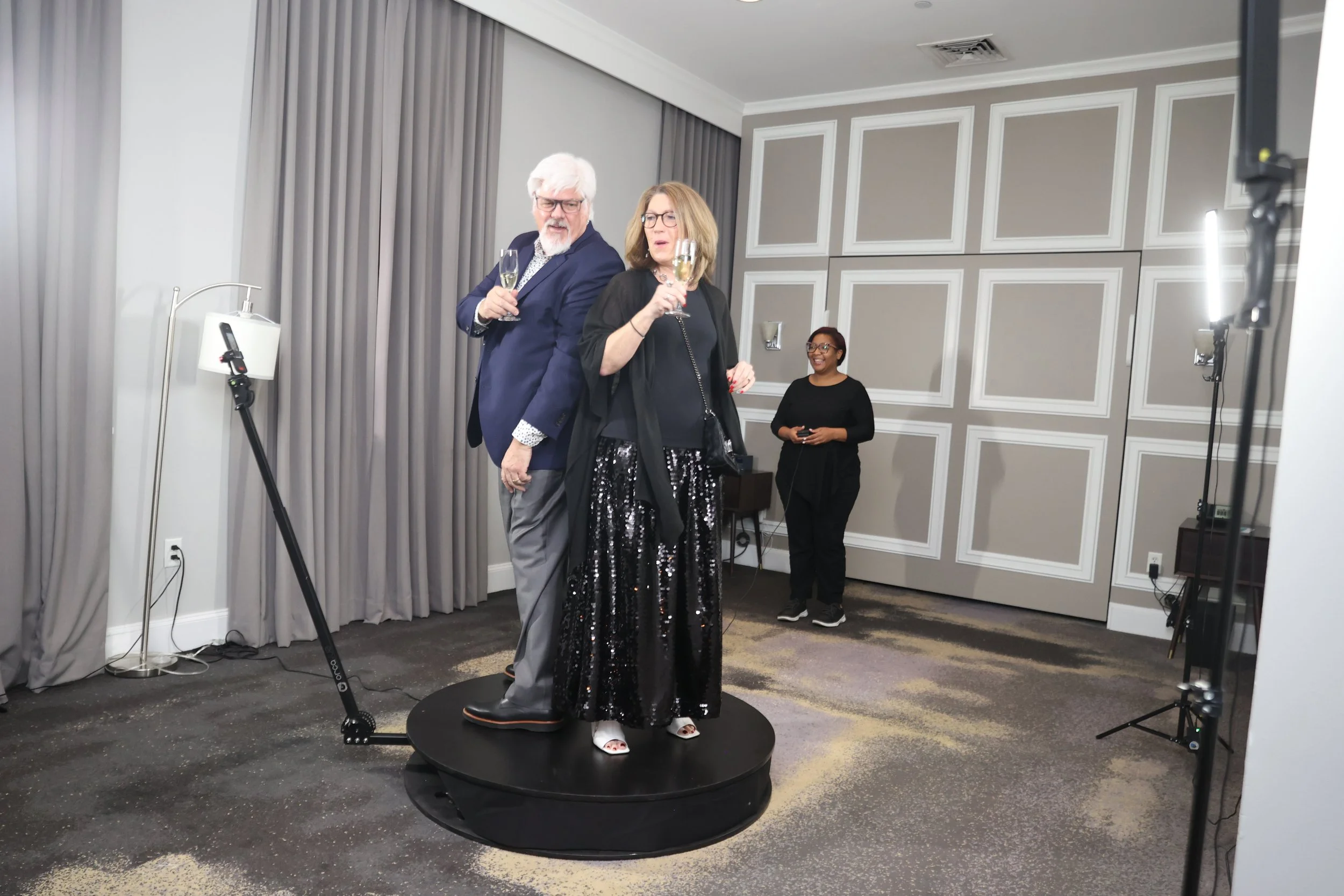 Another crowd favorite is our Hollywood-Style 360 Booth—a digital booth that creates dynamic 360-degree videos showcasing guests, their outfits, and the event atmosphere, all delivered straight to their phones for easy sharing.